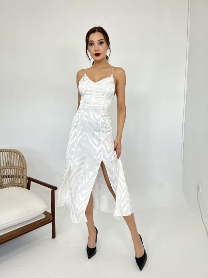 Kadın Askılı Yuvarlak Yaka Kaplumbağa Desenli Süprem Elbise