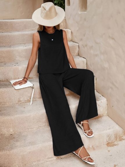 Kadın Sıfır Kollu Bisiklet Yaka Aerobin Bluz Ve Pantolon Ikili Takım