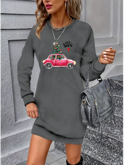 Kadın Uzun Kollu Bisiklet Yaka Desenli Viskon Iki Iplik Elbise