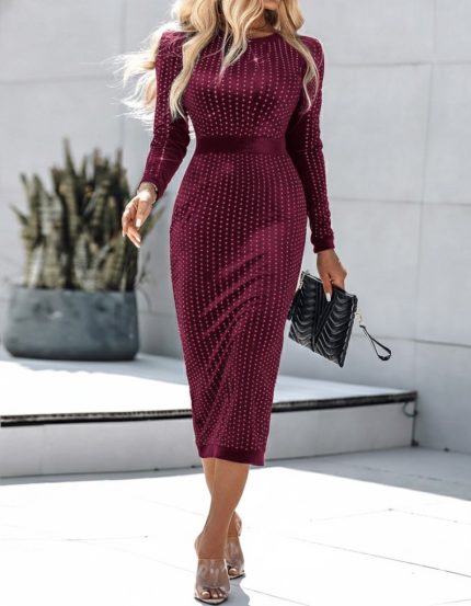 Kadın Uzun Kollu Kruvaze Yaka Yandan Bağlamalı Krep Tam Boy Elbise