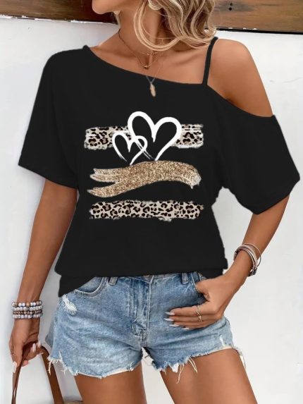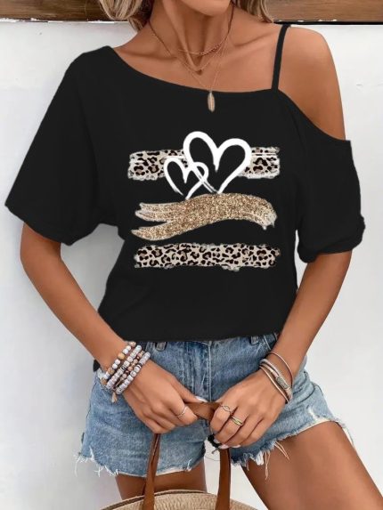 Unisex Bisiklet Yaka Baskılı Oversize T-Shirt – Siyah