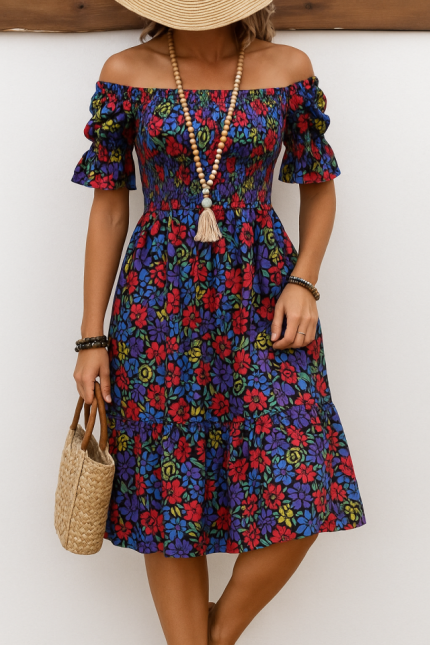 Kadın Kısa Kollu Bisiklet Yaka önden Fırfırlı Büzgülü Janjan Krep Kısa Elbise
