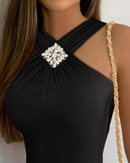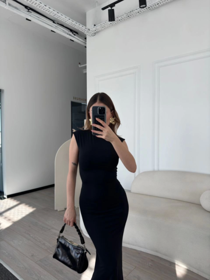 Kadın Askılı Kare Yaka önden Fermuarlı Geniş Kesim Janjan Krep Elbise