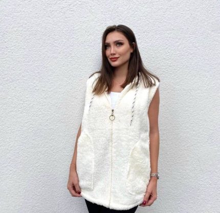 Kadın Kapüşon Ve Fermuar Detay Welsoft Kolsuz Yelek