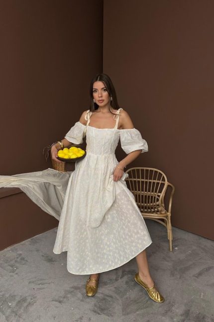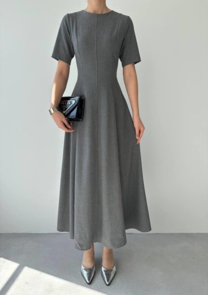 Kadın Kısa Kollu Yakalı Viskon Iki Iplik Elbise