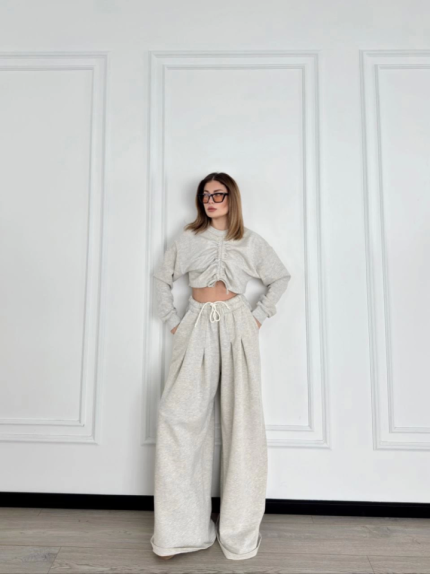 Crop Gömlekli Ve Eteği Büzgülü Tasarım Takım 10195