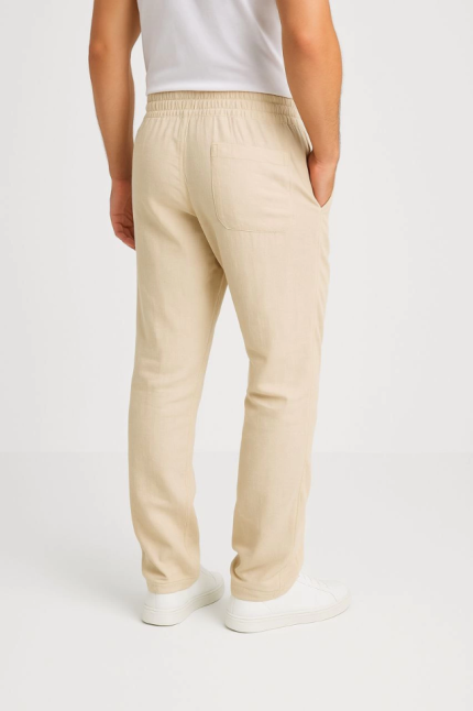 Erkek Keten Pantolon – Cepli, Beli Lastikli Ve Bağcıklı, Nefes Alan Rahat Kalıp, Yazlık Ve Baharlık Günlük Giyim, Şık – Konforlu Boru Paça Model – Bej