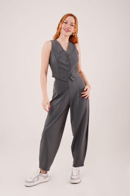 Kadın Dijital Baskılı Kumaş Düğme Detaylı Mini Tulum