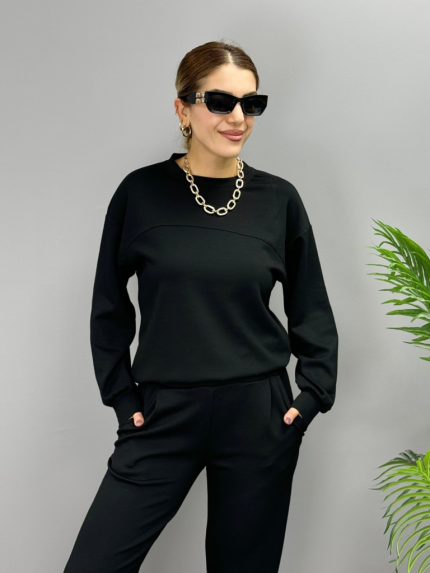 Kadın Uzun Kollu Bisiklet Yaka Viskon Iki Iplik Bluz Ve Pantolon Ikili Takım