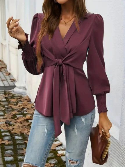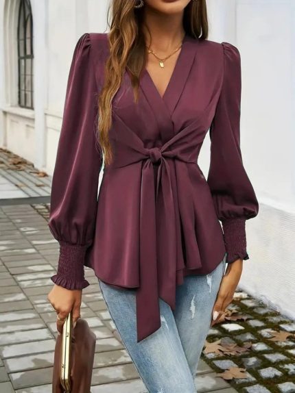 Kadın Uzun Kollu V Yaka Triko Bluz