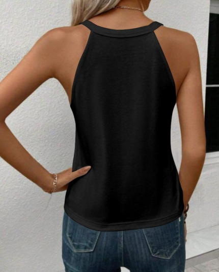 Kadın Sıfır Kol Halter Yaka Kalp Baskılı Viskon Bluz