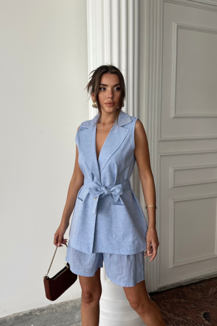 KETEN YELEK – ŞORT TAKIM – Mavi