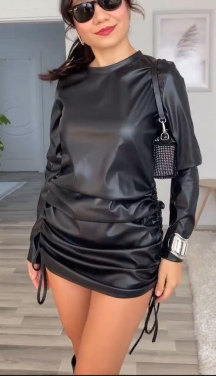 ₺700,00Kadın Yarım Balıkçı Yaka Vatka Ve Büzgü Detay Mini Elbise