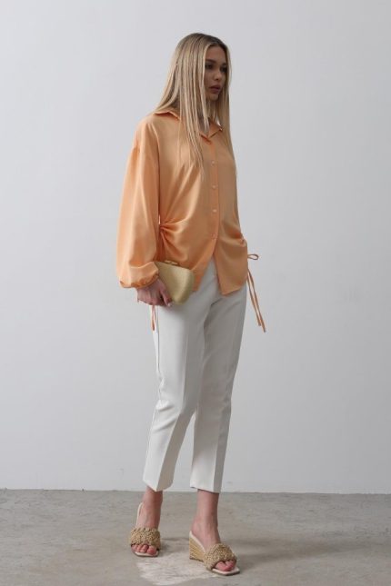 Yan Büzmeli Tunik Gömlek – Beyaz
