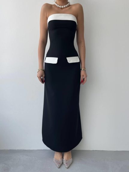 ₺1.100,00Kadın Yarım Ay Kollu Yuvarlak Yaka önünde Toka Detaylı Modal Maxi Elbise