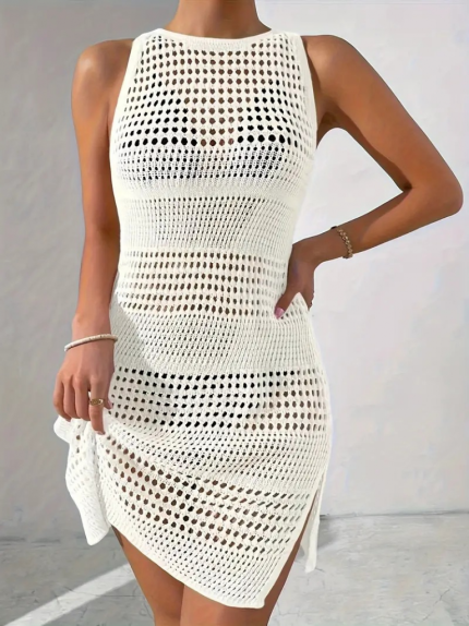 Kadın Kolsuz Derin Sırt Dekolteli Ajurlu Triko Pareo
