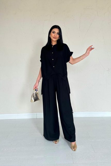 Kadın Kristal Kumaş Garnili Cep Detaylı Ikili Takım
