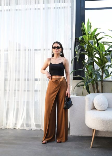 230 Gr Poly Viscose Lycra Metal Düğme Palazzo Pantolon