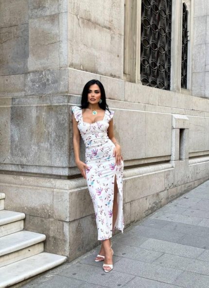 Kadın Askılı Kare Yakalı Midi Ithal Krep Elbise