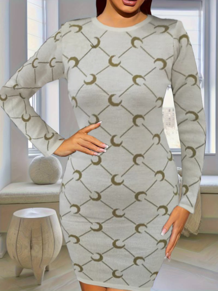 Kadın Uzun Kollu Kruvaze Yaka Mini Ithal Krep Elbise