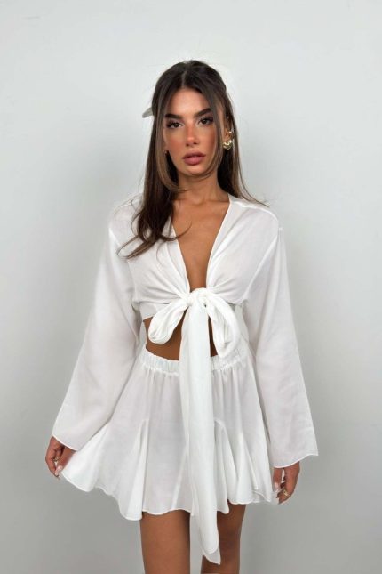 Unisex Nakış İşlemeli Şort Takım – Beyaz