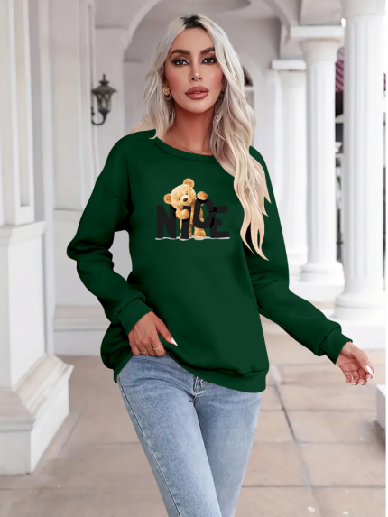 Kadın Uzun Kollu Bisiklet Yaka Viskon Iki Iplik Bluz