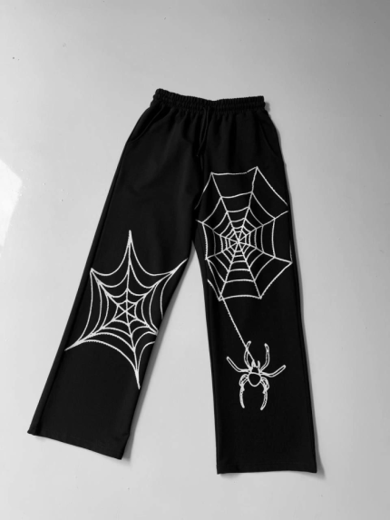 İki İplik Kumaş Örümcek Baskılı Esofman – Siyah