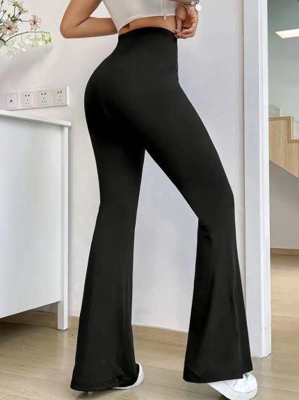 Kadın Yüksek Bel Paçaya Doğru Genişleyen Yandan Yırtmaçlı Dalgıç Pantolon