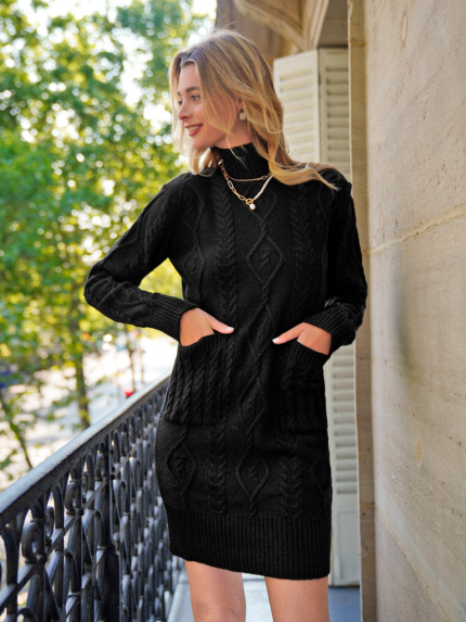 Kadın Uzun Kollu Bisiklet Yaka Midi Kadife Elbise