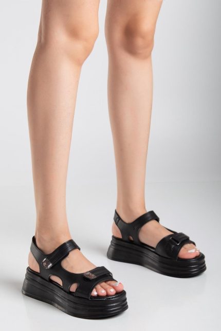 Saide Siyah Cilt Cırt Cırtlı Sandalet