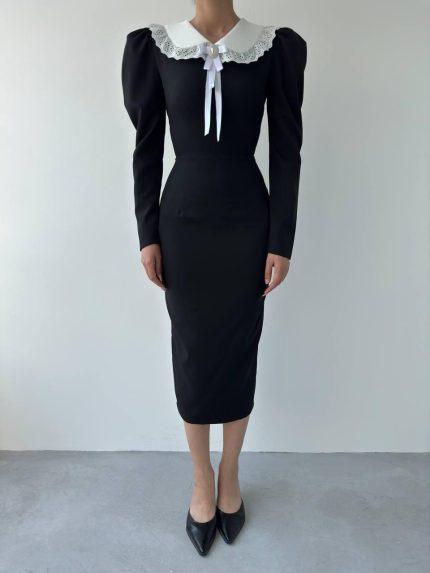 Kadın Uzun Kollu Derin Yuvarlak Yakalı Kısa Viskon Iki Iplik Elbise