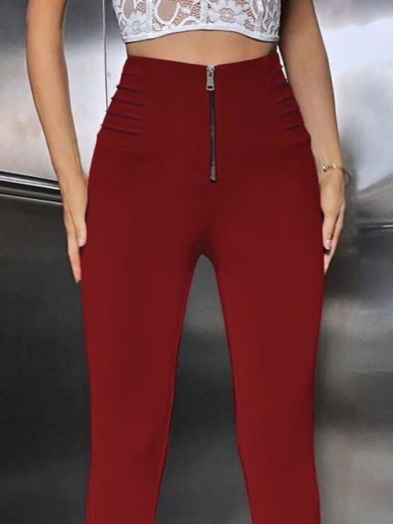 Kadın Yüksek Belli önden Fermuar Ve Nervur Detaylı Dalgıç Tayt