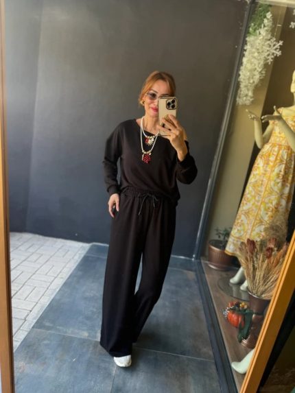 Kadın Uzun Kollu Bisiklet Yaka Viskon Iki Iplik Bluz