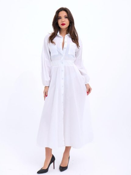 Kadın Uzun Kollu Madonna Yakalı Yırtmaç Detaylı Uzun Ithal Krep Elbise