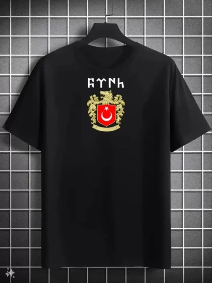 Unisex Bisiklet Yaka Baskılı Oversize T-Shirt – Siyah