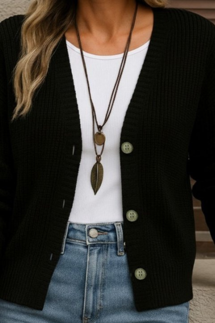Kadın Uzun Kollu Düğme Detay Triko Hırka