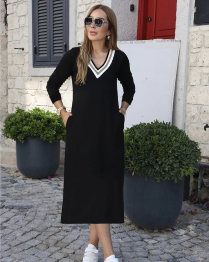Kadın Kısa Kollu V Yakalı Ithal Krep Elbise