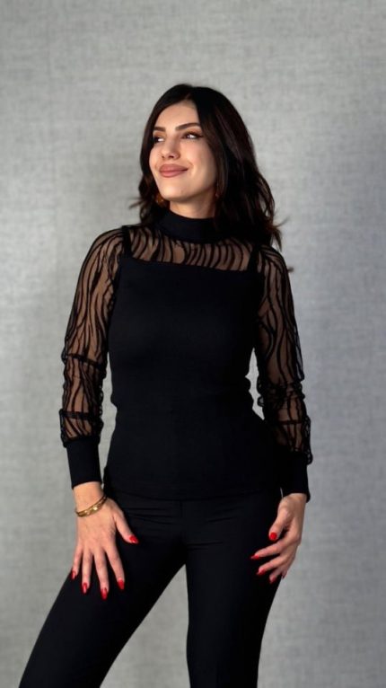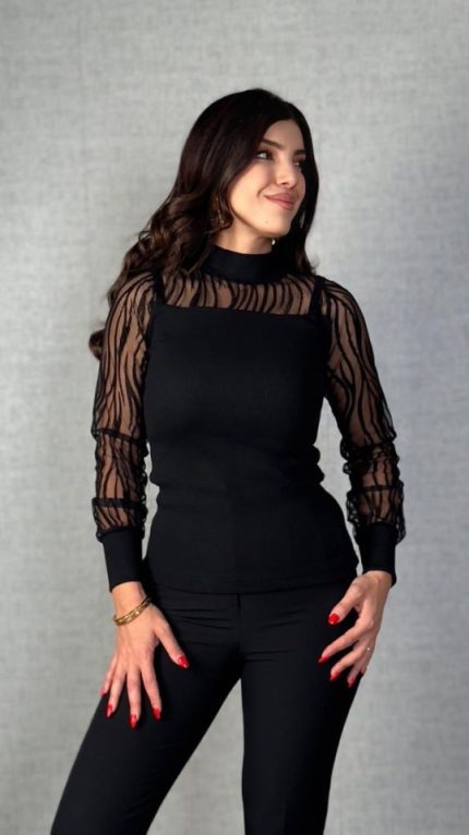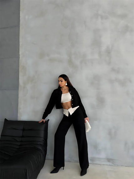 KETEN GÖMLEK-CROP-SALAŞ PANTOLON TAKIM – Siyah