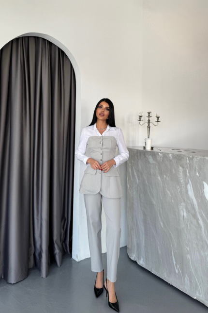 Göğüs Bağcık Detaylı Ajurlu Bluz Pantolon Takım 10098