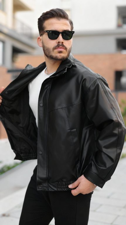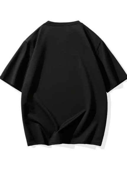 Baskılı Oversize Bisiklet Yaka T-shirt – Siyah