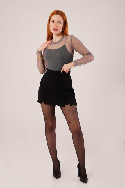 Kadın Uzun Kollu Bisiklet Yaka Desenli Viskon Iki Iplik Bluz