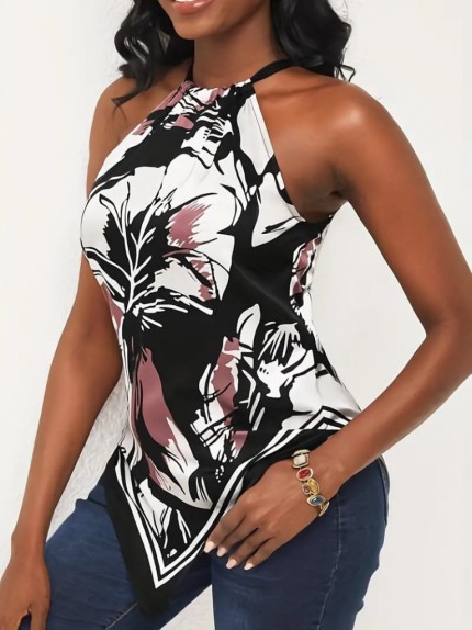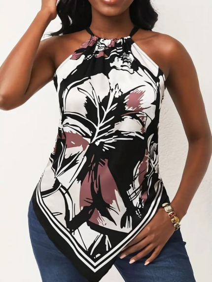 Kadın Omuzlardan Açık Boyundan Geçmeli Desenli Süprem Bluz