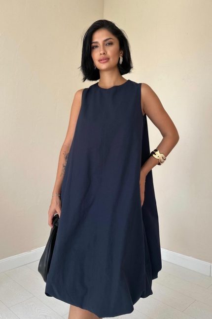 Kadın Uzun Kollu Bisiklet Yaka Kısa Viskon Iki Iplik Elbise