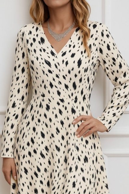 Kadın Uzun Kollu V Yakalı Desenli Modal Mini Elbise