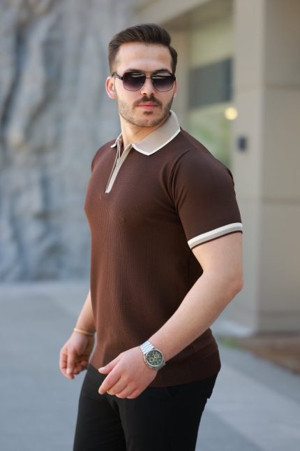 Erkek Hakim Yakalı Kısa Kollu Pamuklu T-shirt