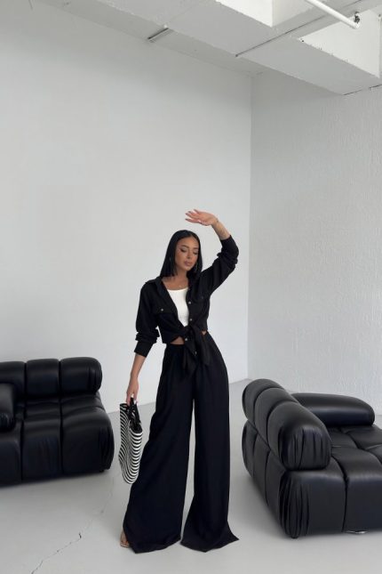 Düğmeli̇ Cepli̇ Keten İki̇li̇ Takim
