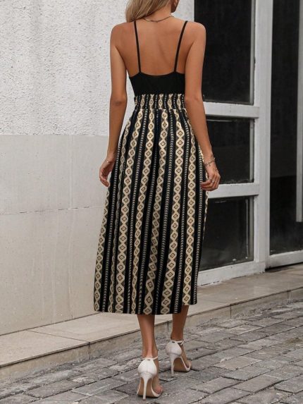 Kadın Ip Askılı Kruvaze Yakalı üst Viskon Alt Desenli Süprem Elbise
