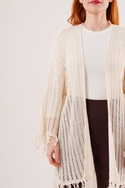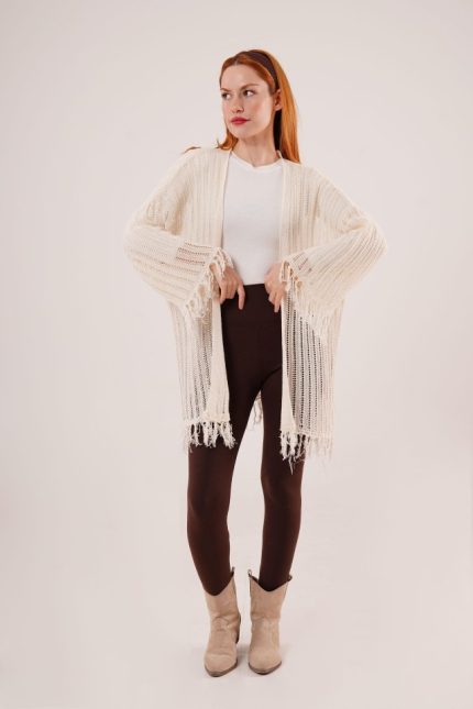 Saten Kuşaklı Ajurlu Triko Elbise 2847