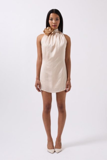 Kadın Askılı Geometrik Yakalı Geniş Kesim Detaylı Ithal Krep Elbise