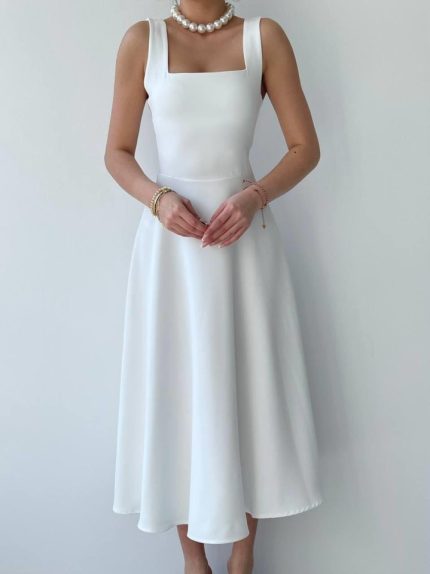 Kadın Boyundan Bağlamalı Şifonlu Kolsuz Fırsat Ürün Diz Üstü Elbise